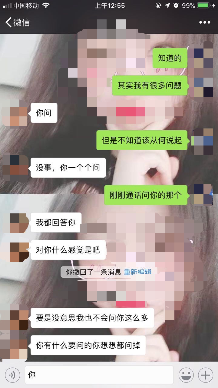 追一个女生蛮久了,双方感觉都还不错,那天和她打电话,我问她对我什么感觉,她没说话。