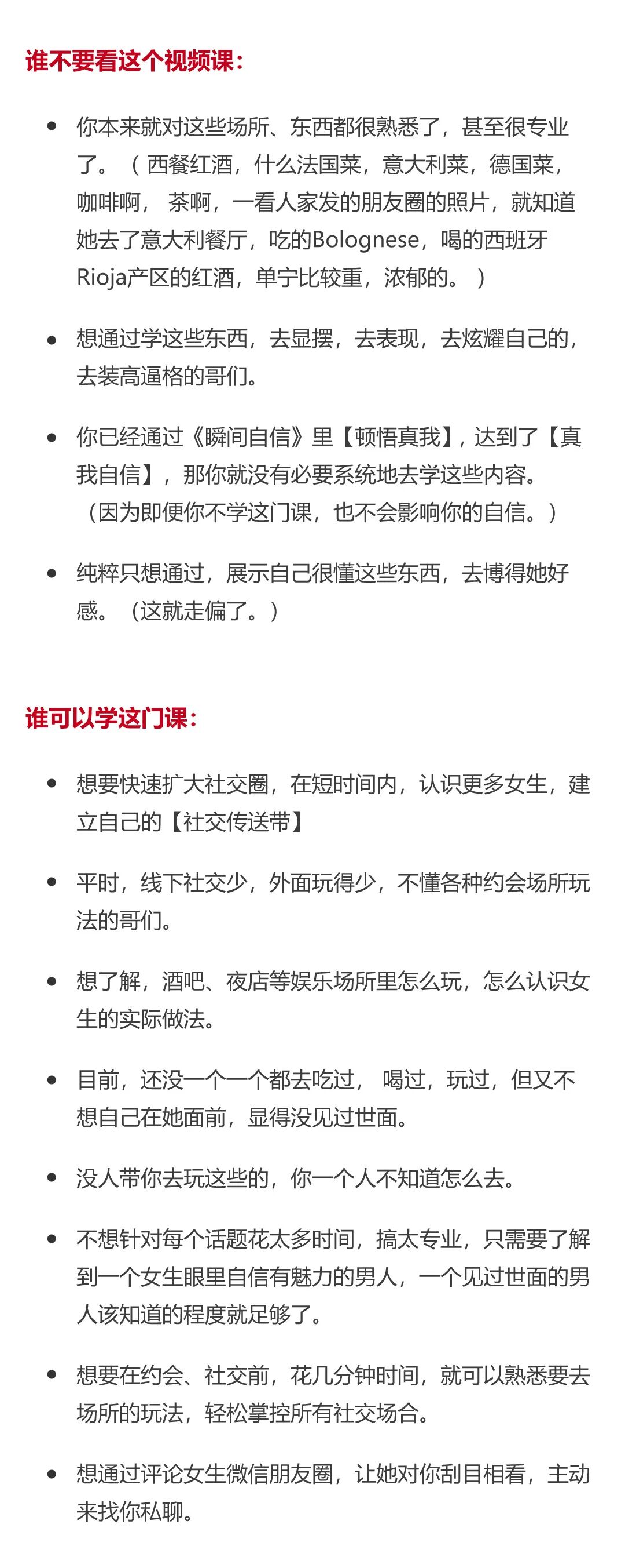 错误清单——你在酒吧夜店里,绝对不要犯的5个错误!课程里我们讲到:在酒吧夜店,女生对你的容错率,会比平时低。所以,这个清单里的错误,你只要犯了一个,你和她就没机会了。