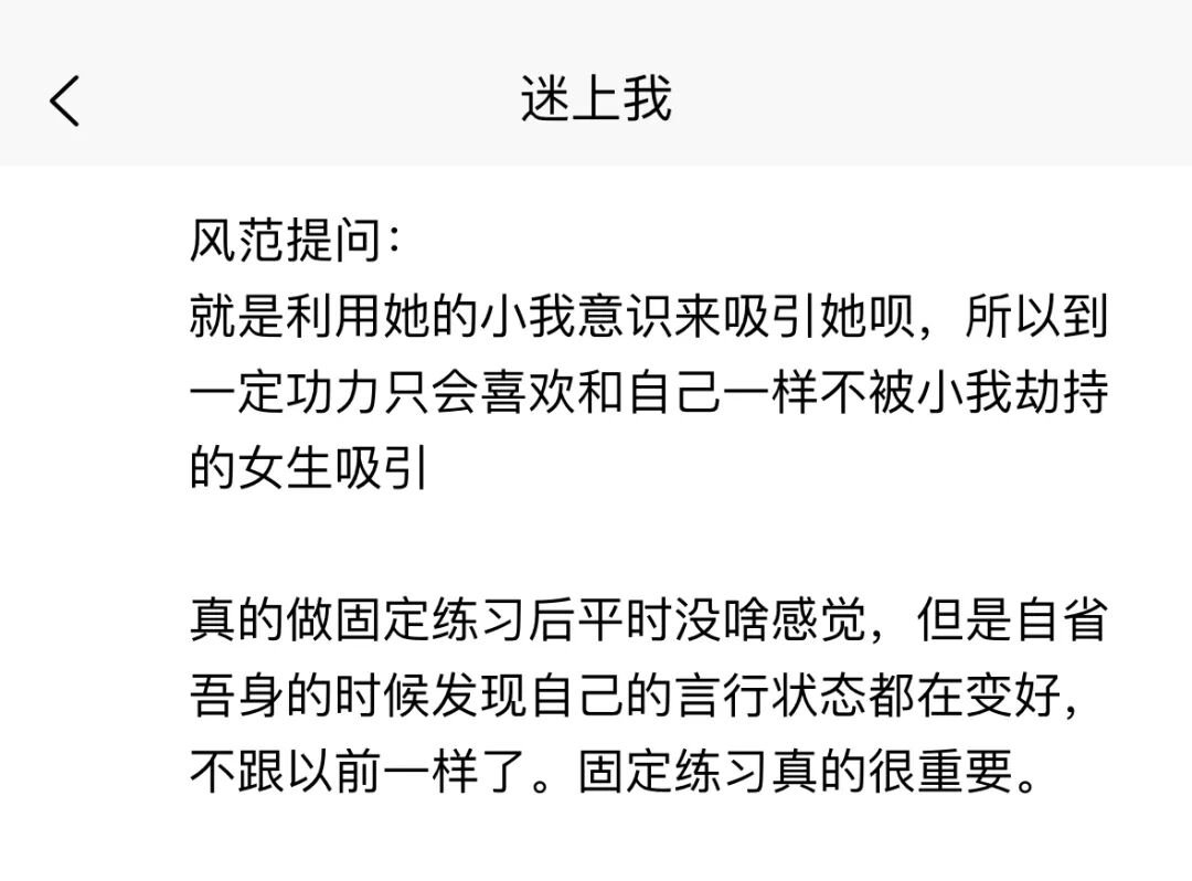当被这个【小我意识】的判心劫持,《迷上我》里讲的【潜沟通】里就会流露出不自信的信息,被女生的第6感捕捉到。从而吸引丧失。