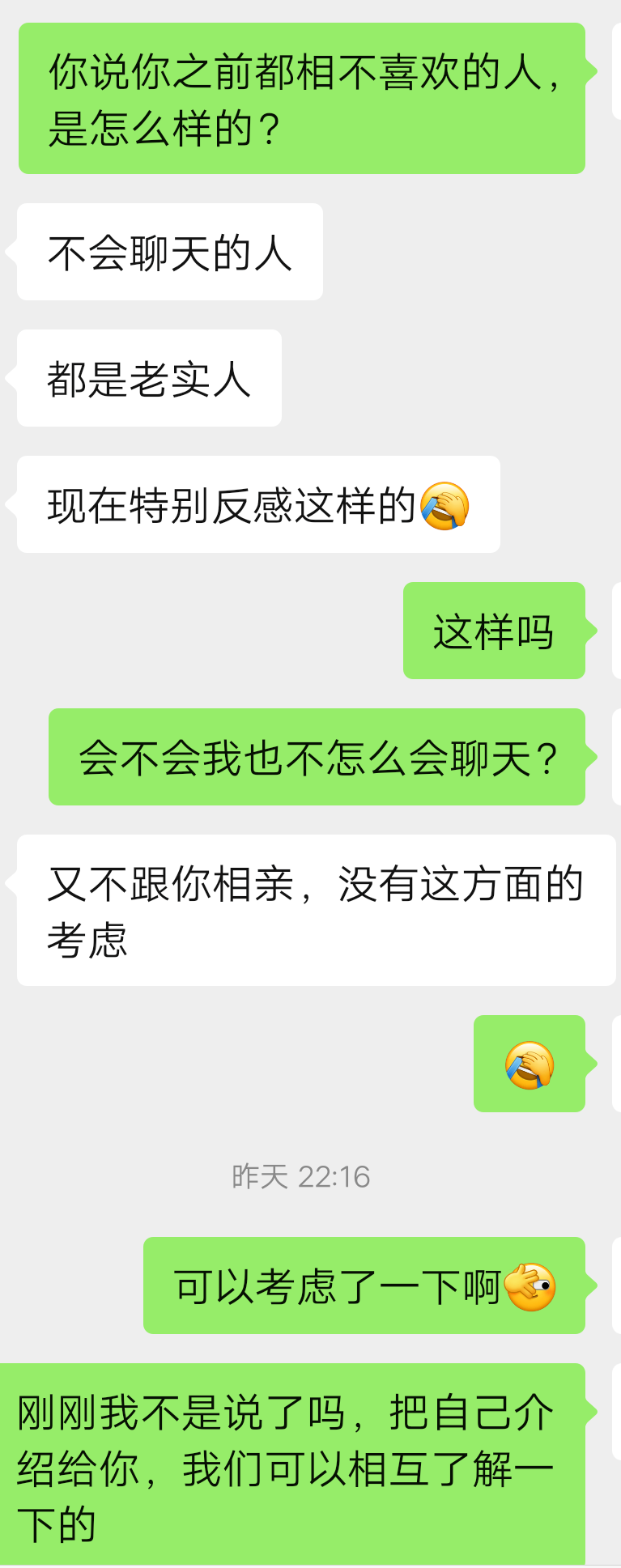 真哥,我跟一个女生是以前初中的同学,春节的时候偶尔加了联系方式,最近聊了一段时间,知道她最近在相亲。想约她出来感觉她不太愿意。请真哥帮忙分析一下。