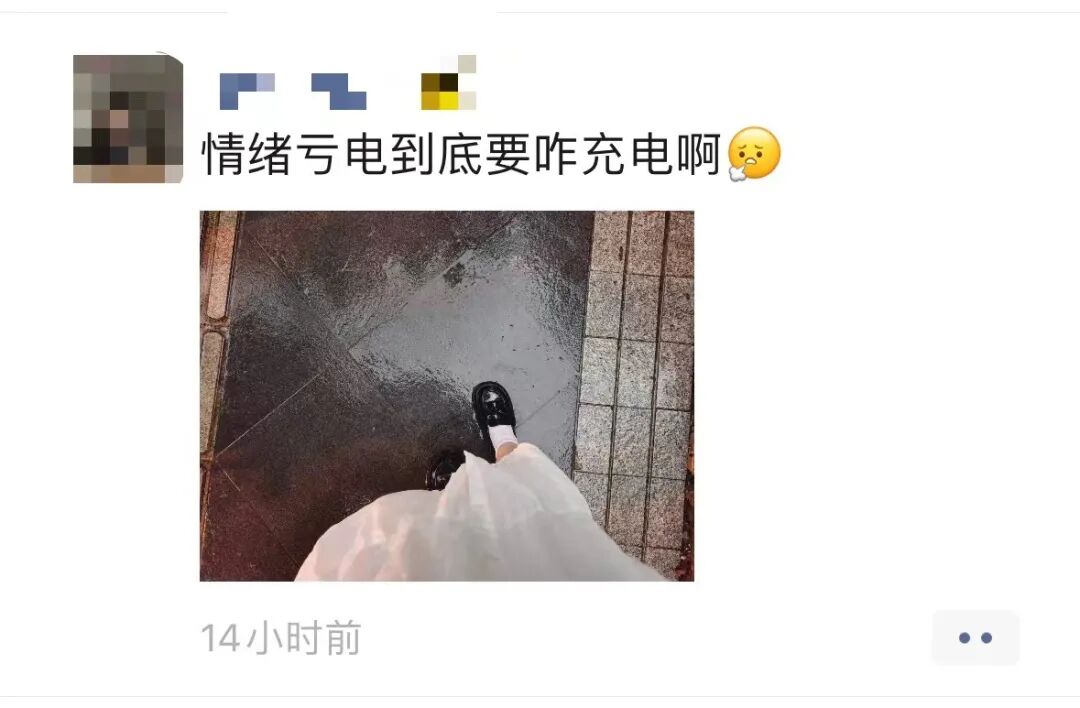 如果你之前聊天了解过她,大概知道她是因为什么情况,发生了这个情绪亏电的问题,或者,她配图照片里能看出蛛丝马迹,能猜测出她是因为什么事情情绪亏电。