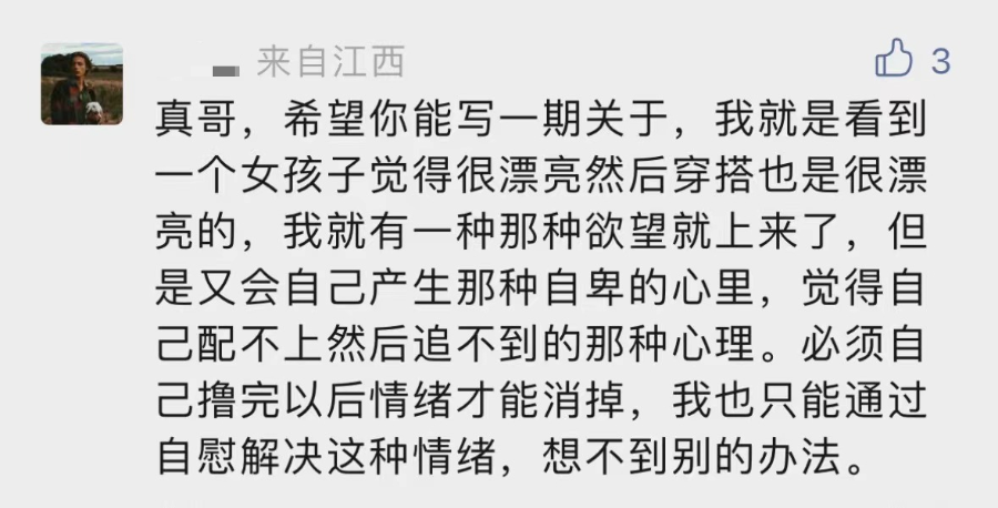 有些哥们,看到这,会以为,是不是不应该打飞机,不能撸?要禁欲。我没这么说。这是误解。这在原本压抑自己的基础上,等于又增加了一层打压。