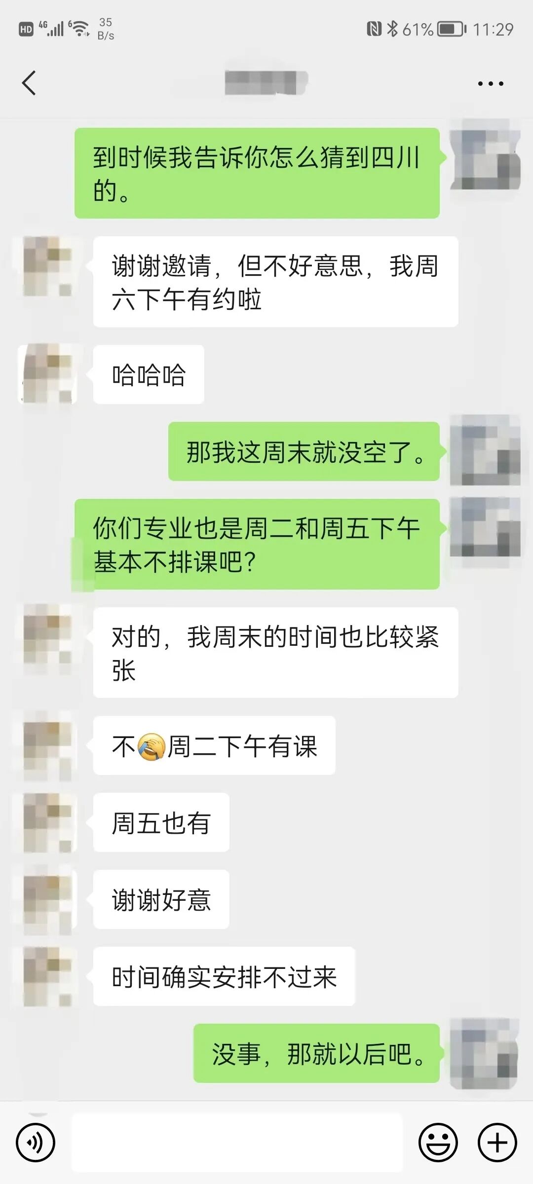 真哥你好,我和她是周三早上的体育课上认识的,我主动上前认识,没聊几句就遇到她的朋友,所以匆忙加了微信。聊了几句,现在想约出去,但现在是什么情况,我不是很清楚。想请真哥看看,接下来该怎么继续发展?