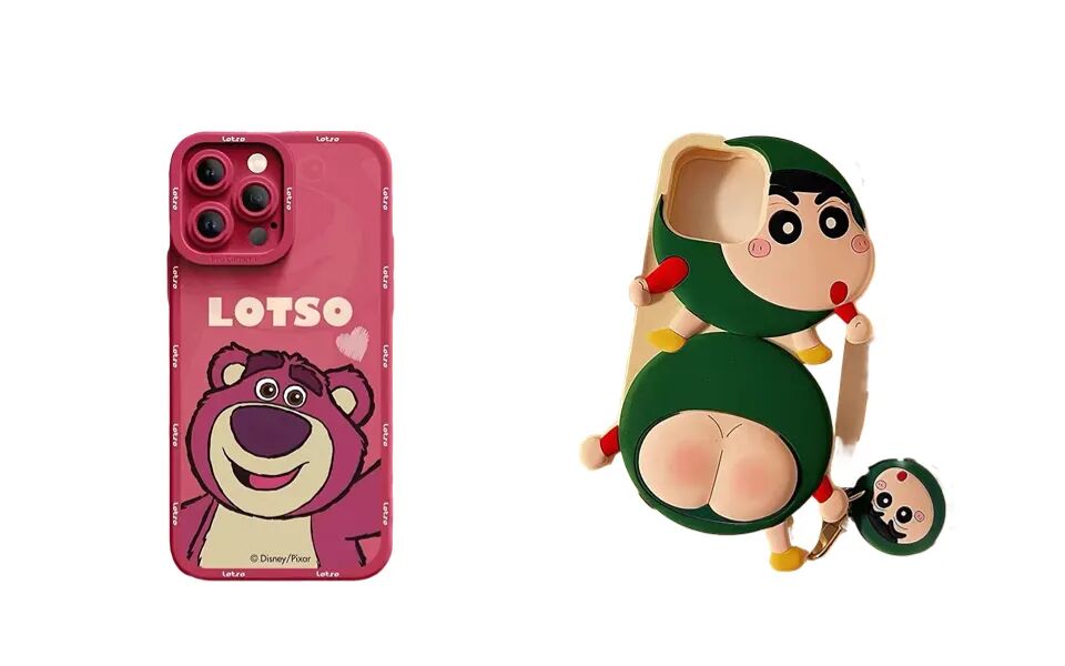 有一类手机壳是专门的卡通造型,比如“草莓熊”“海绵宝宝”“小黄人”“雪宝”“蜡笔小新”。往往是经典的卡通形象。