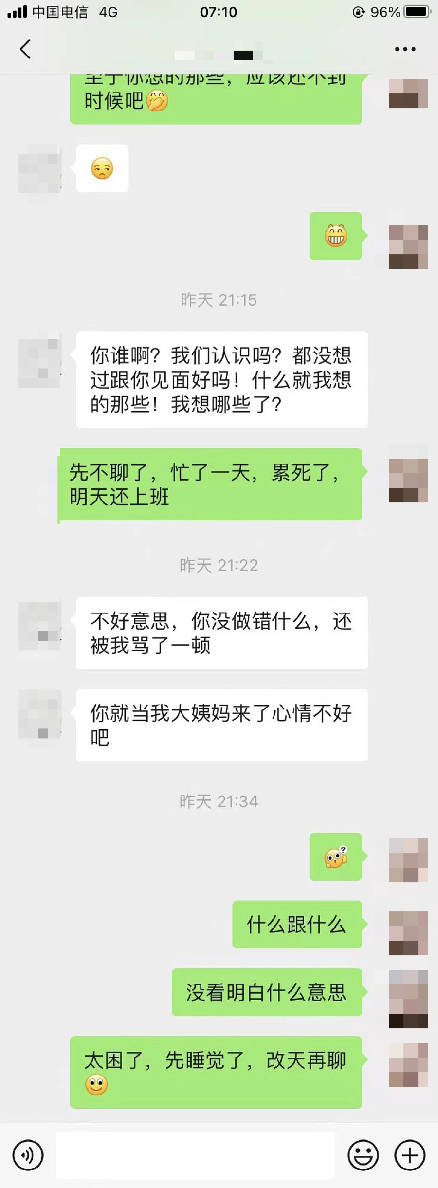 真哥,我是在取快递的时候见到的她,她给快递工作人报手机号时恰巧被我听到了,然后就加了她的微信,她还不认识我。加微信后,相互聊了一下,然后我就相约她见面,她没回应。帮我看看是怎么回事?