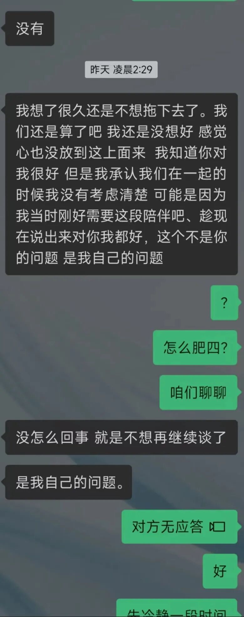 真哥,我和她是17年认识,之前发生了些事然后我删了她。四个月前成为我的同事再次相识的,目前还是热恋期。前天她生日带她去吃生日餐,昨晚凌晨她回到家后突然就跟我说不想继续谈下去了,我当时不知道该怎么办,昨晚想挽回但被她拒了。
