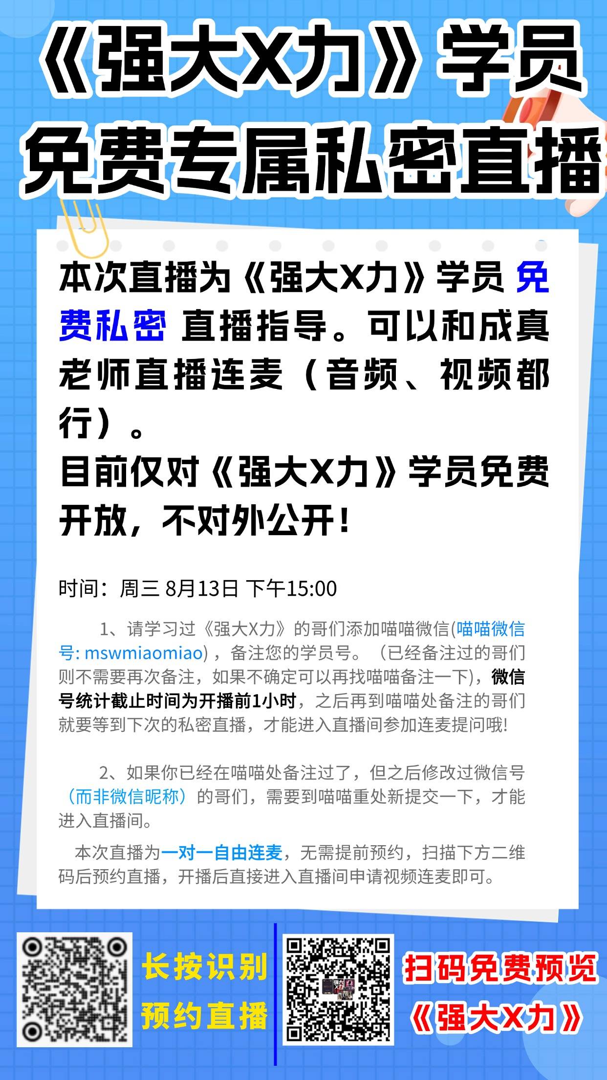 还会有一场《强大X力》学员的私密免费直播互动指导。