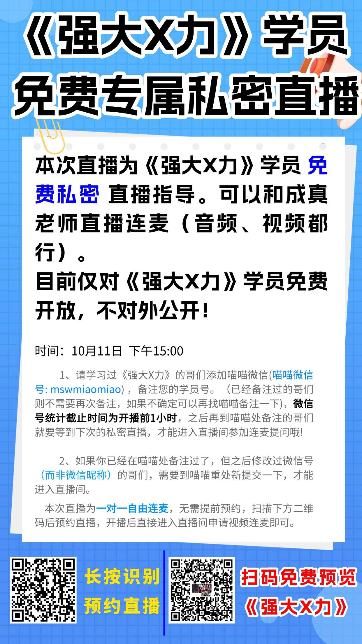 还会有一场《强大X力》学员的私密免费直播互动指导。